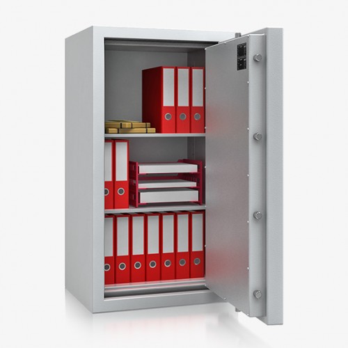- Verschluss: Doppelbartschloss VdS-Klasse 2 mit 2 Schlüsseln (Länge 170 mm) + mech. Zahlenschloss VdS-Klasse 2 mit 1 Mio. Verstellmöglichkeiten